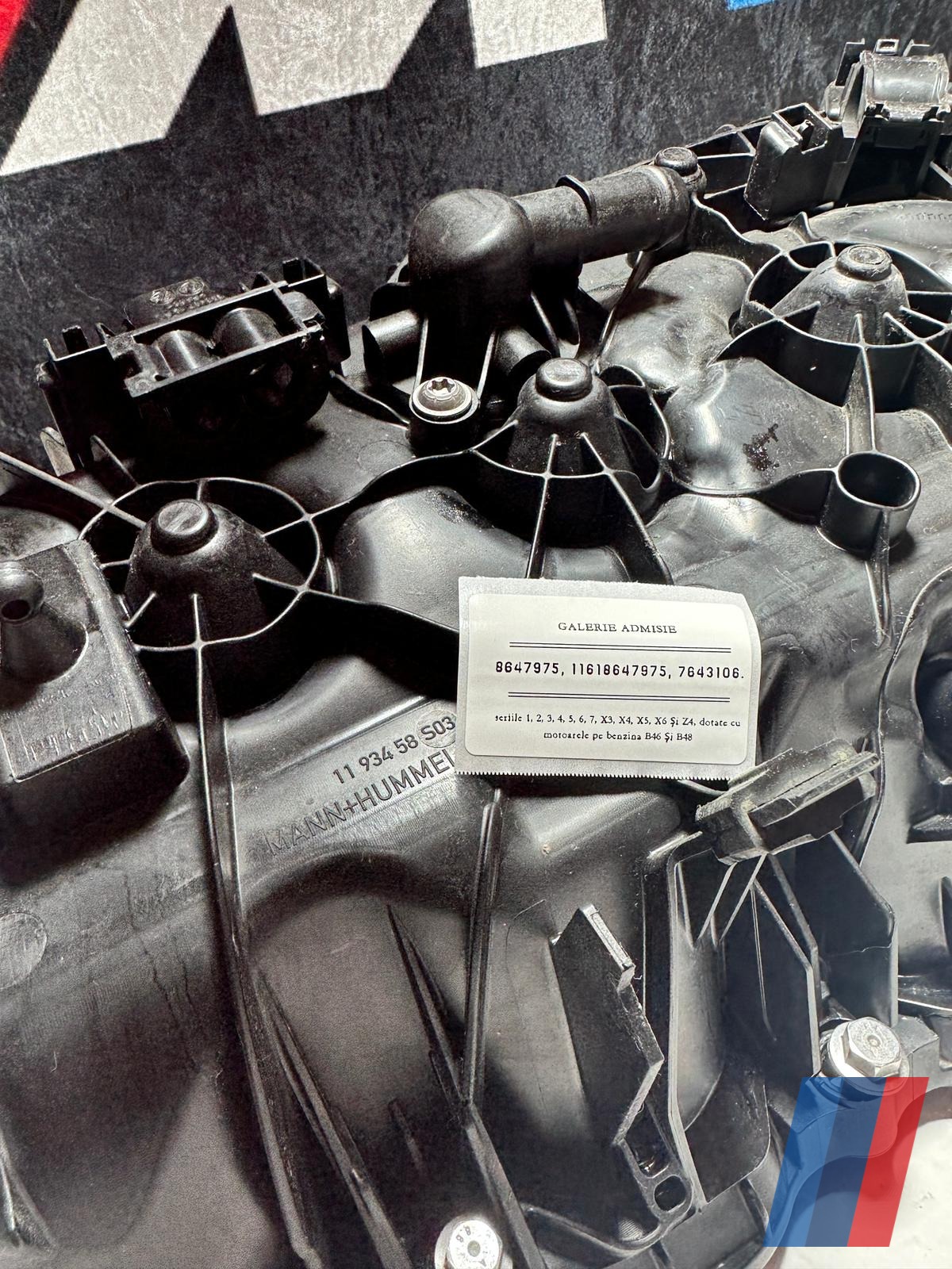 Acest ansamblu monobloc din plastic ranforsat are rolul de a distribui aerul comprimat de turbosuflantă în mod egal către cele patru orificii (cilindri) ale motorului. Caracteristica principală este prezența intercooler-ului integrat direct în corpul galeriei, care răcește aerul fierbinte provenit de la turbo înainte de intrarea în motor. Răcirea eficientă a aerului crește densitatea acestuia, asigurând o ardere mai completă și o putere sporită, în special la motoarele turbo de înaltă performanță.